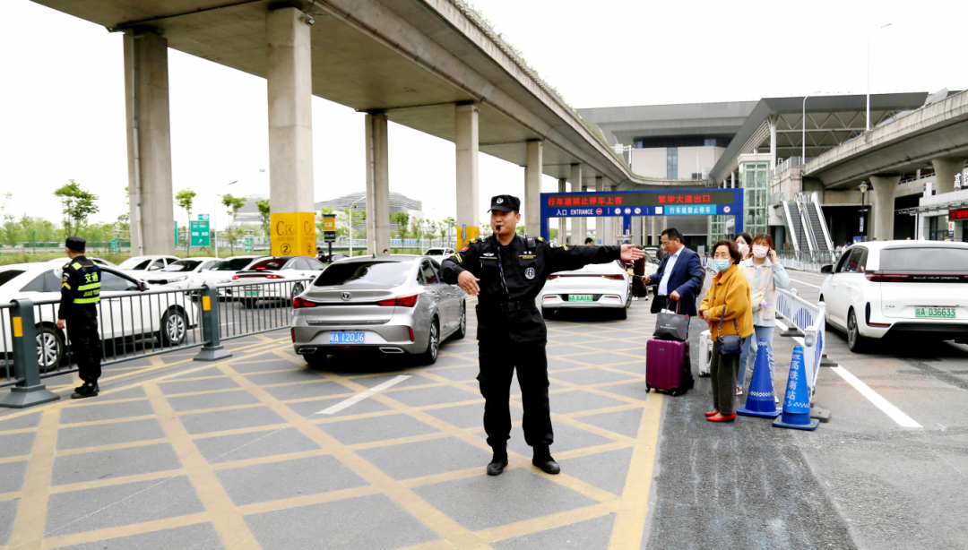 为了维护上车点的秩序,南站综管办有工作人员和志愿者在此指挥网约车有序停放,保证旅客能快速有序地上车。