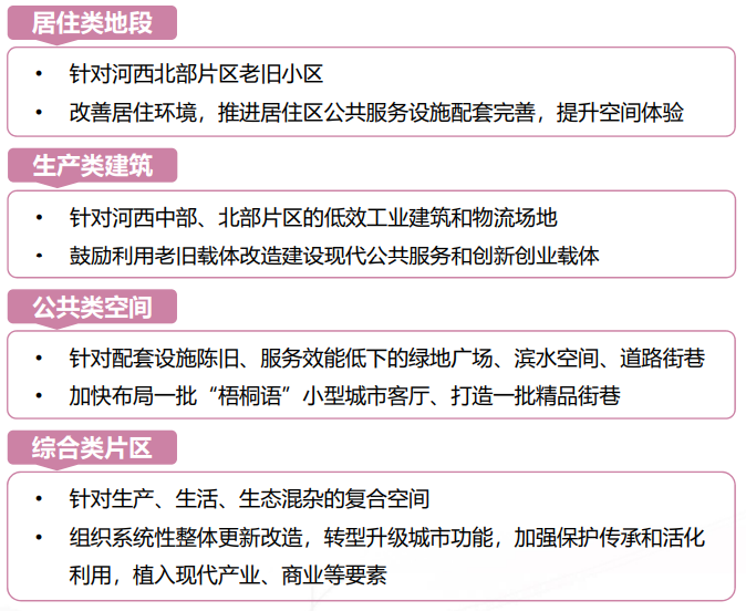 六廊:老城烟火活力廊、应天大街跨江活力廊、奥体活力廊、河西大街活力廊、江山大街跨江活力廊、龙王大街活力廊。