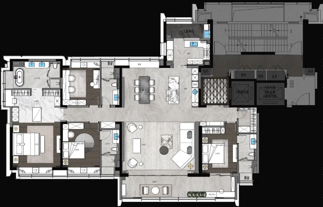其中268㎡两梯两户,387㎡每层仅做一户、配双电梯;387㎡户型拥有约75㎡行政套房主卧(独立卫浴空间、独立行政空间、独立衣帽空间、独立休息空间)。