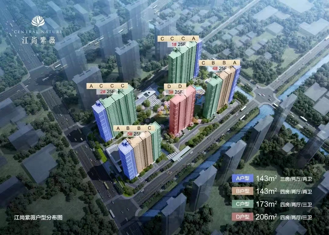 江尚紫薇:在售2、5号楼,户型建面为约143㎡、173㎡,全装修销许均价44839元/㎡,另有3800元/㎡升级装修包可选,首付3成起。项目目前还有1、3、4号楼待售。