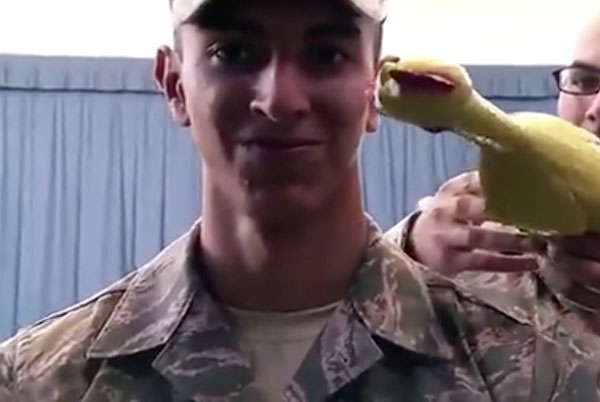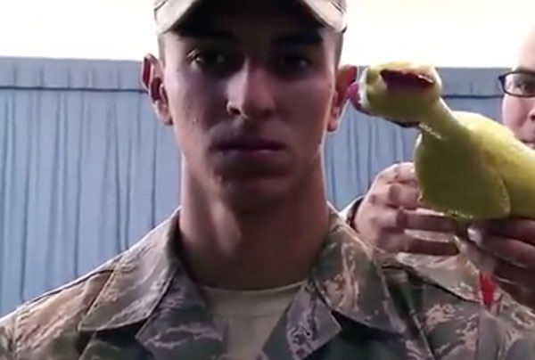 美国空军荣誉卫队的士兵,在完成训练之后,都要经历严酷的尖叫鸡耐力测试。