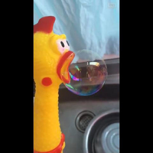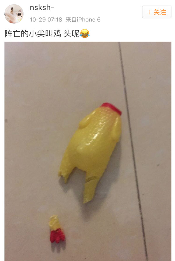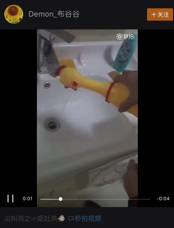 只要捏一下它的肚子,尖叫鸡就会发出“啊啊啊嗷”的惨绝人寰的叫声。▼