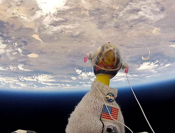 NASA曾经让一只叫卡米拉的尖叫鸡,独自坐着热气球上天,帮助收集辐射数据,完成飞行任务。▼