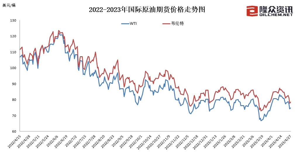 “虽然市场持续权衡欧美经济衰退风险与亚洲需求向好表现,产油国5月起也将落实额外减产计划;但欧美央行继续加息意愿仍存,部分银行股价大跌及债务上限问题,令美国经济衰退忧虑增强,原油期货价格接连受挫。”隆众资讯成品油分析师刘文杰对界面新闻表示。