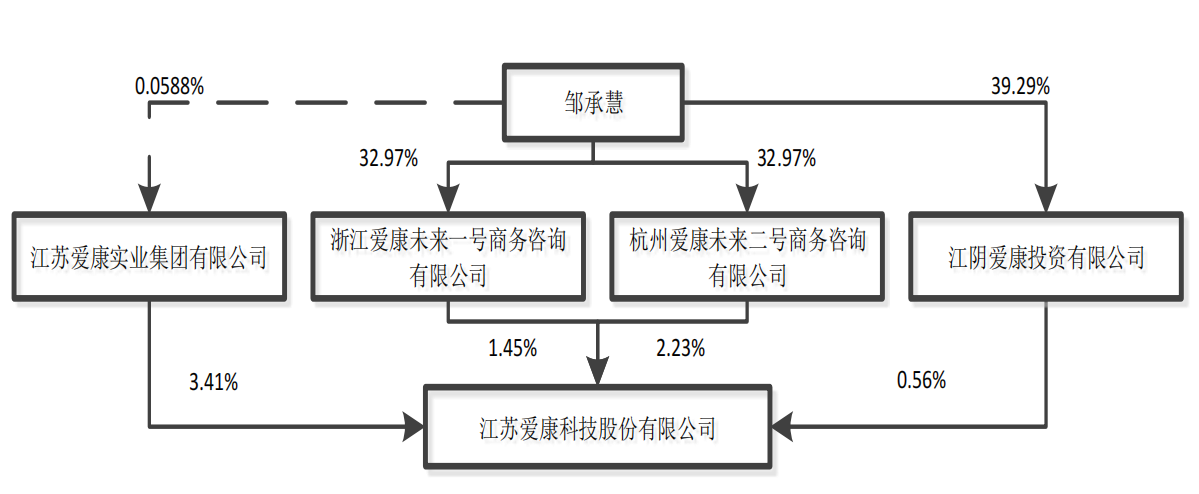 爱康科技披露,公司控股股东爱康实业及其一致行动人江阴爱康投资有限公司、浙江爱康未来一号商务咨询有限公司(下称一号商务)、杭州爱康未来二号商务咨询有限公司(二号商务)、杭州爱康未来三号商务咨询有限公司合计控制公司7.65%的股权。