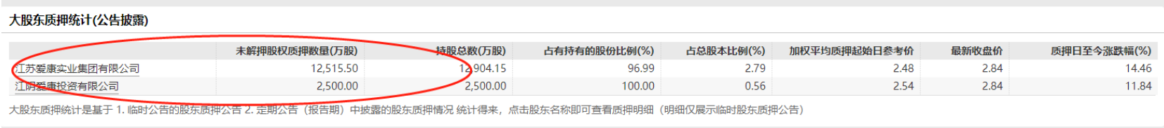 在大笔套现的同时,邹承慧及其父亲邹裕文也通过高比例质押进行套现。截至2023年4月29日,根据wind统计,邹承慧控制的主要企业质押比例已接近100%。其中江苏爱康实业集团有限公司质押比例近97%,江阴爱康投资有限公司质押比例已达100%。