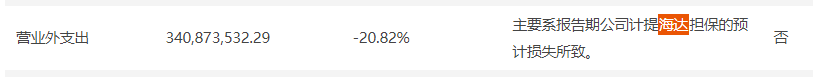 2014年、2015年,在邹承慧控制下,爱康科技为邹承慧的“老东家”海达集团旗下子公司累计担保超3亿元,而后海达集团濒临破产,贷款出现逾期。2019年爱康科技不得不计提高达3.41亿元的营业外收入,同时计提预计负债3.23亿元。与此同时,2家债权机构对爱康实业持有的部分股权进行了财产保全措施,邹承慧旗下的爱康实业所持上市公司股份的近八成被冻结。这一年,爱康科技在上年净利1.25亿元的基础上巨亏了16.12亿元。