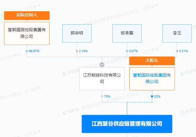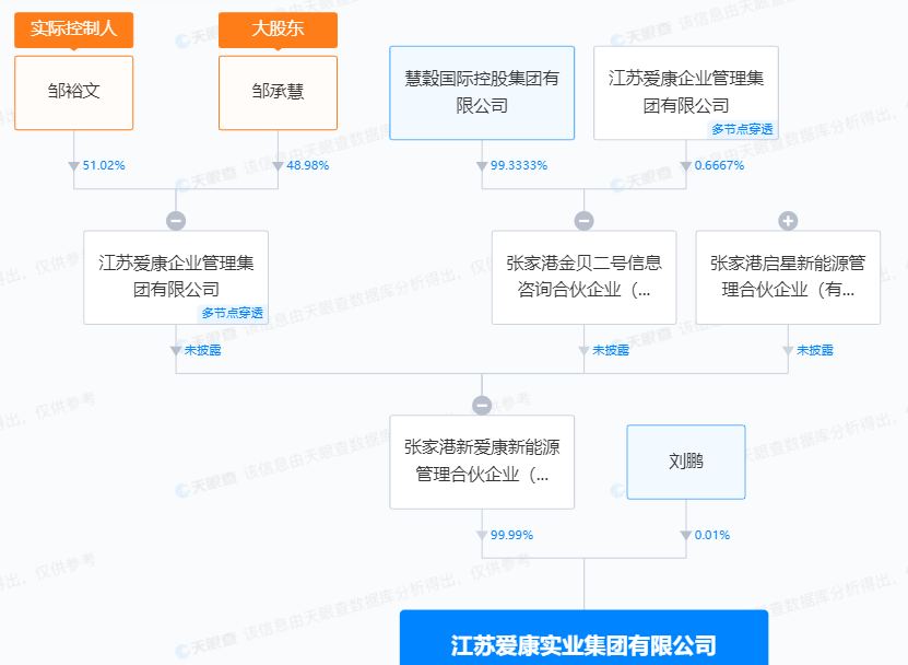 再如,爱康科技为江西慧谷供应链管理有限公司担保3000万元,但天眼查显示,该公司社保人员也仅有1人,该公司与邹承慧也有千丝万缕的联系。