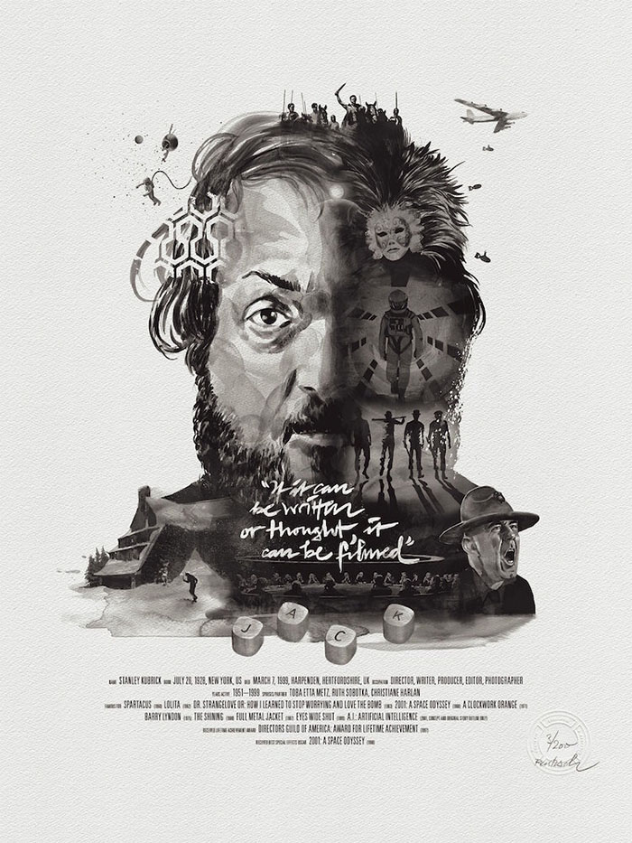 受到了电影的启发,活跃在汉堡的插画师Julian Rentzsch创造了一系列电影大师的肖像画。这些画像(水彩以及数位相结合)细节处理精致,以灰色为主调,还原度非常高。从永不过时的库布里克到鬼才昆汀,在这些多才导演的肖像画中,你可以清楚地看到电影的发展传奇。