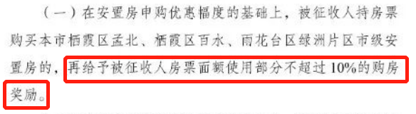 政策重点如下:①、给予安置房价值20%的奖励。这个奖励力度相比南京主城六区的还是相当给力的,相比南京主城六区房票安置新政,购买栖霞、雨花安置房的给予奖励为10%购房奖励。
