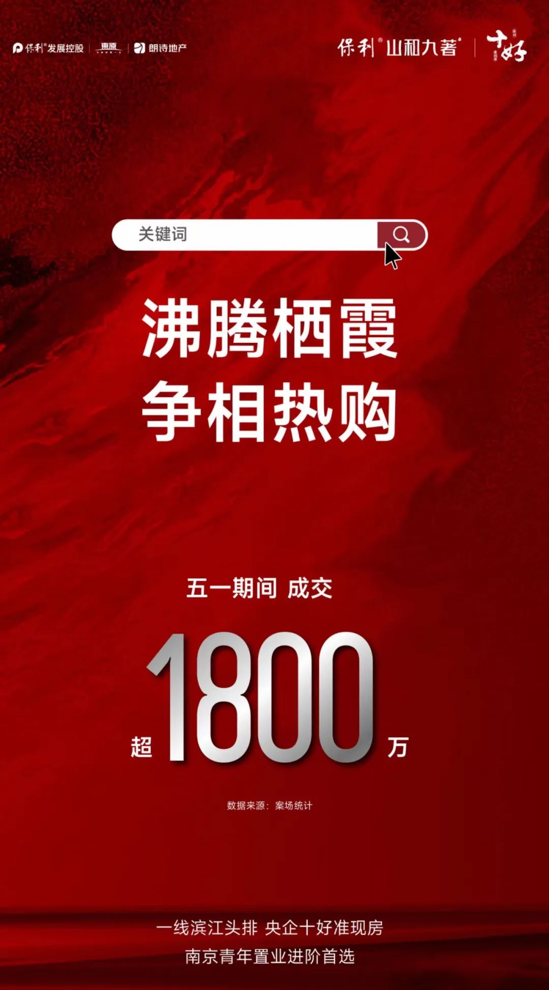 据南京网上房地产数据显示,截至5月3日,今年五一假期期间(4.29-5.3),南京楼市共新房认购936套,成交310套,同比去年五一假期(认购818套,成交266套),认购量同比上涨14.4%,成交上涨16.5%。