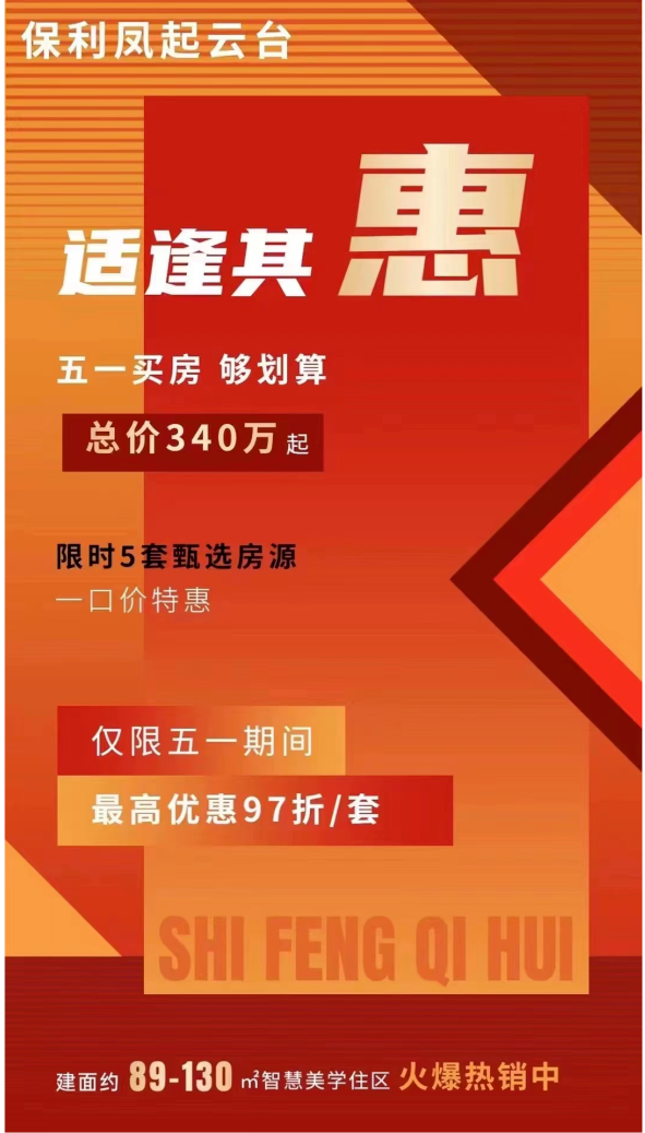 又如,城南软件谷的保利合肥城建凤起云台也推出限时一口价房源,最高优惠97折。