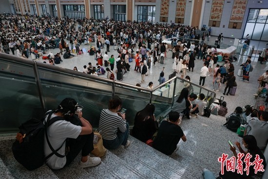 近几个月,山东淄博因烧烤及其衍生的细致周到的城市服务而“出圈”,热度持续攀升,“五一”假期成为游客“进淄赶烤”的高峰期。5月1日下午6点多,淄博站候车厅内不少旅客席地而坐。一名列车员介绍,由于旅客量的显著增加,“五一”期间不少经过淄博的列车临时增挂了车厢,旅客上下车时间延长,许多车次不可避免地晚点。