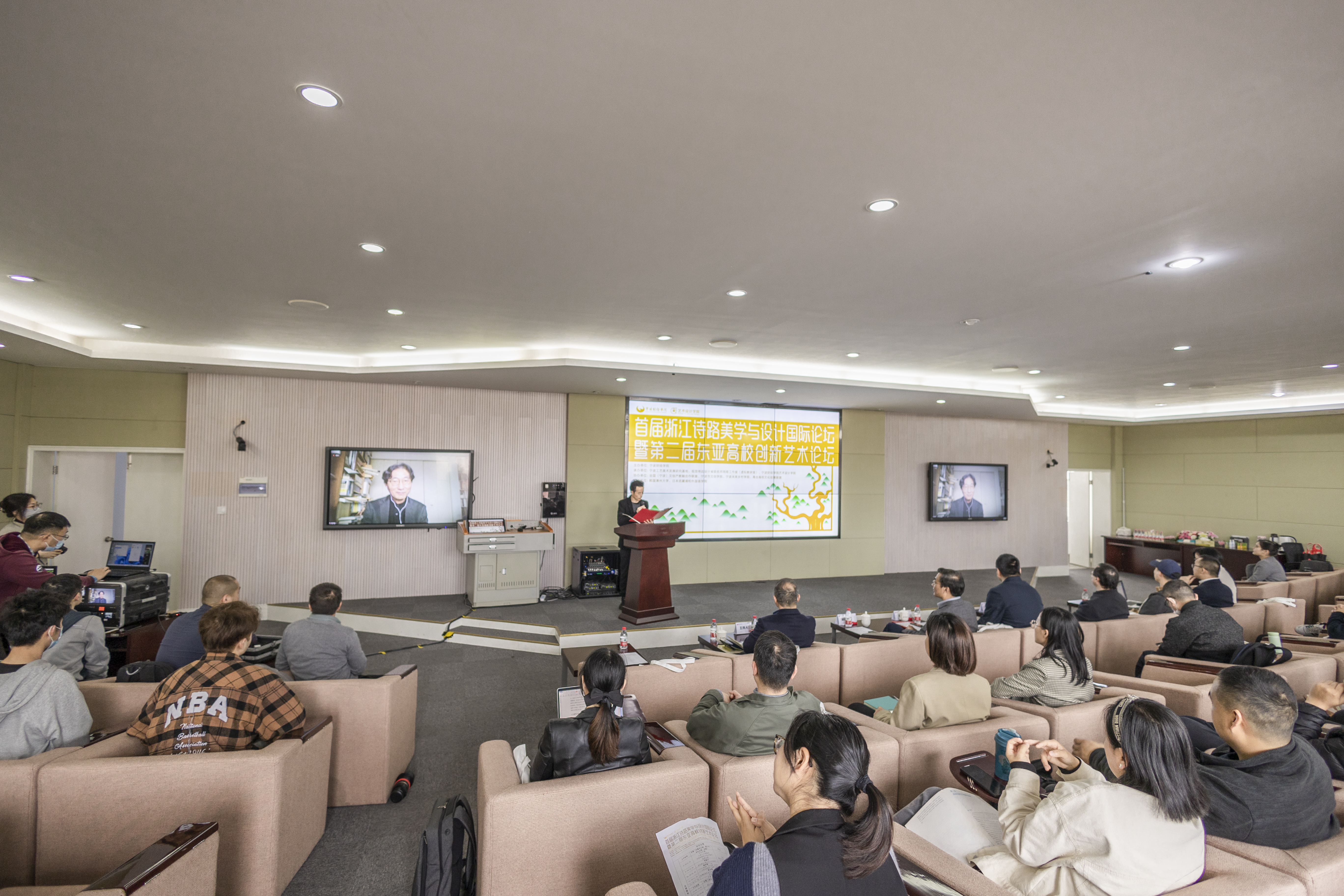 论坛上,中国计量大学、唐诗之路研究会秘书处秘书长邱高兴教授首先以”浙东唐诗之路与名山文化谱系“为题介绍了浙东唐诗之路,并从名山文化这一角度展示了浙东诗路厚重的历史文化底蕴与秀美的山川自然景观,为论坛交流研讨揭开了序幕。之后,日本福冈国际大学海村唯一教授、广西艺术学院李永强教授、中央民族大学刘成有教授、韩国清州大学郭鲁峻教授、山东大学李飞副教授与我校刘振博士,分别以“日本五山禅僧的‘浙江诗路’美学意义——以浙江诗路的‘西湖’诗为例”、“徐渭绘画在20世纪中国画界的接受”、“浙江诗路文化及其域外传播”、“地区文化产业发展现况分析及成功经验——以韩国清州市为中心”、“宋代美育思想之异军苍头——略论王安石的美育思想”、“浙江诗路美学与设计哲学”为主题,与大家分享了他们在浙江诗路这一研究领域中的研究角度与前期成果。