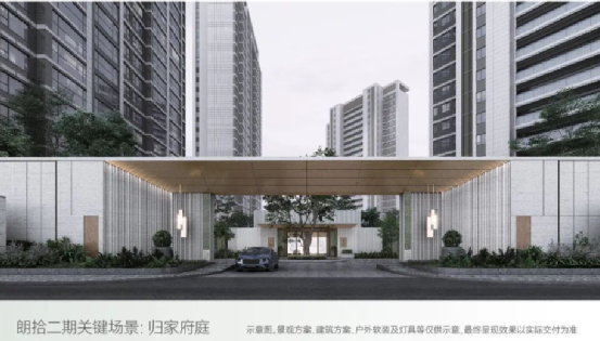 该项目与万科朗拾一路之隔,延续“拾系”理念,朗拾二期同样延续社区自然优雅的静谧与闲适氛围。统一质感的景墙与入户,与一期对望,形成整体自然的围合感,营造出又一方隐秘精致的超级领域。