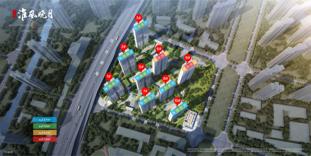上铁·淮风晓月在售1、2、3、5-10号楼房源,销许均价41044-44051元/㎡,户型建面约112、142㎡,另有2500元/㎡升级装修包可选。
