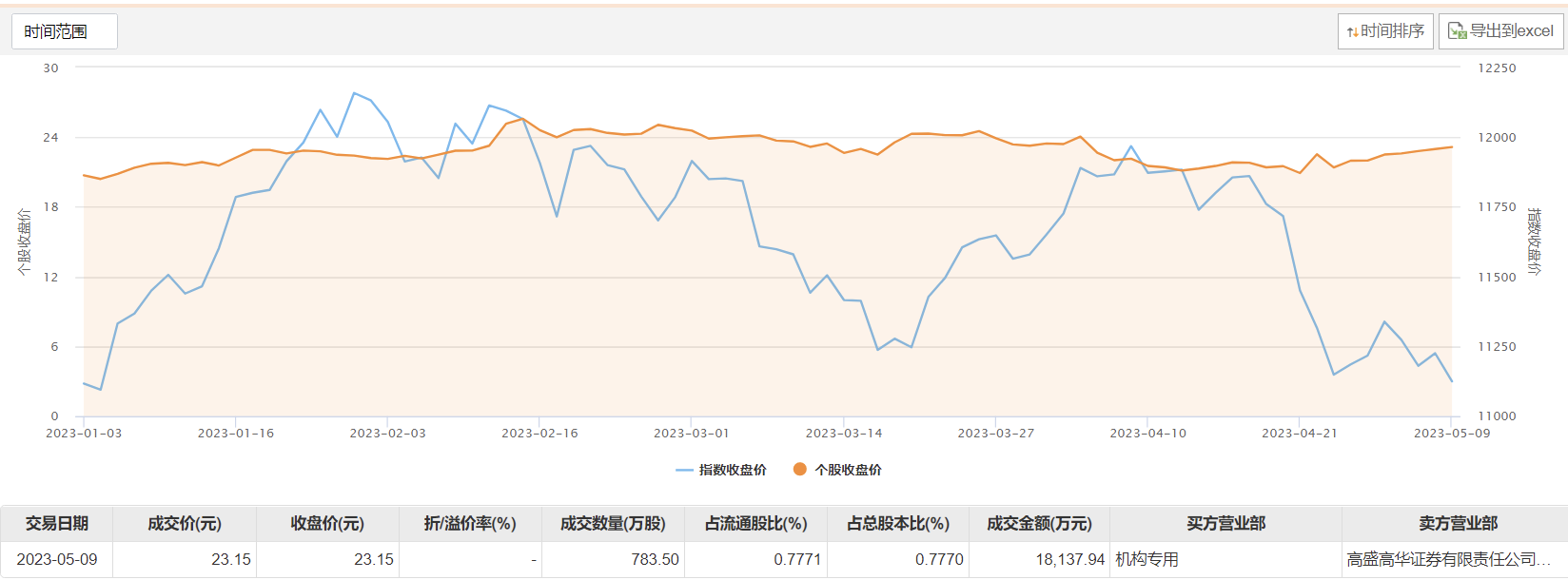 5月9日,许继电气大宗交易成交783.5万股,成交额1.81亿元,占当日总成交额的32.58%,成交价23.15元,较市场收盘价23.15元持平。