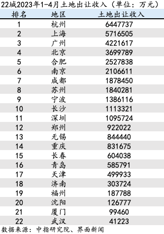 中指院数据显示,1-4月,22城土地出让收入总计达3708亿元,占全国的46%左右,撑起了全国土拍市场的半边天。