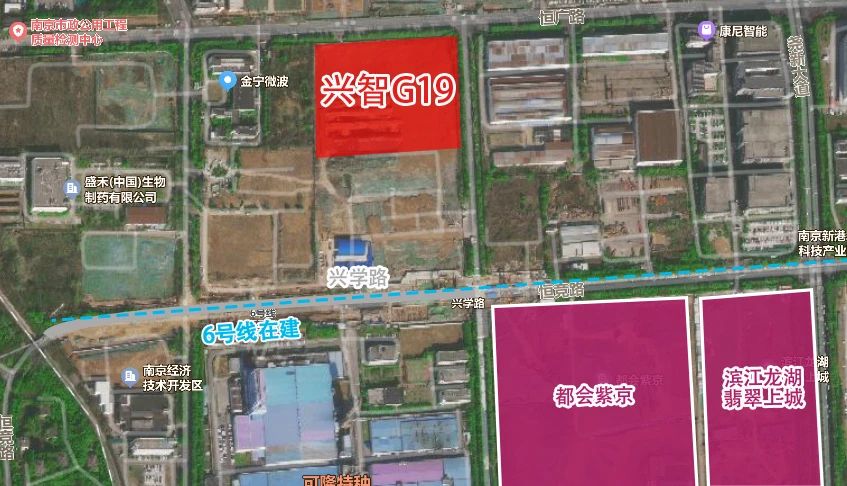 G19地块所在的兴智中心片区,为南京经济技术开发区转型升级、产城融合发展的重要阵地,规划定位为“创享城·邻里居·新工坊”,将依托兴智科技园及周边片区重点发展商务办公、科技研发、产业服务、商业服务、酒店、公寓等功能,打造一座拥抱生活的共享之城、活力便捷的宜居之城和面向未来的创新之城。地块南侧规划有小学1所、幼儿园3所,该片区去年以来未有土地出让。