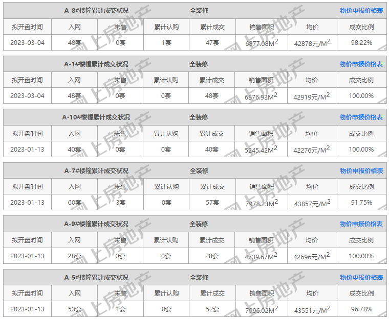 1月9日,项目首开,5、7、9、10号楼销许,共181套房源(人才55套,无房55套),建筑面积约122㎡、143㎡以及非标、顶底跃户型。销许均价约42742元/㎡,另有升级装修包5000元/㎡,首付5成,验资262万元。当时共474组摇181套房源,中签率38.2%,开盘当天,项目基本售罄。