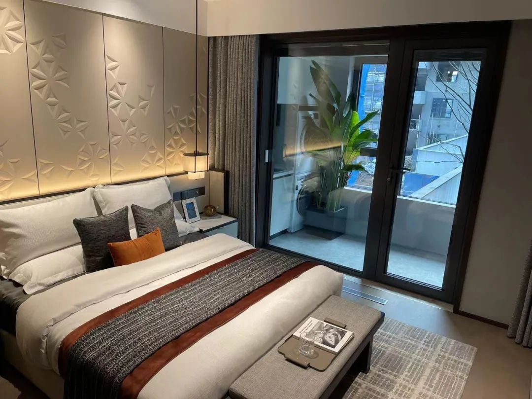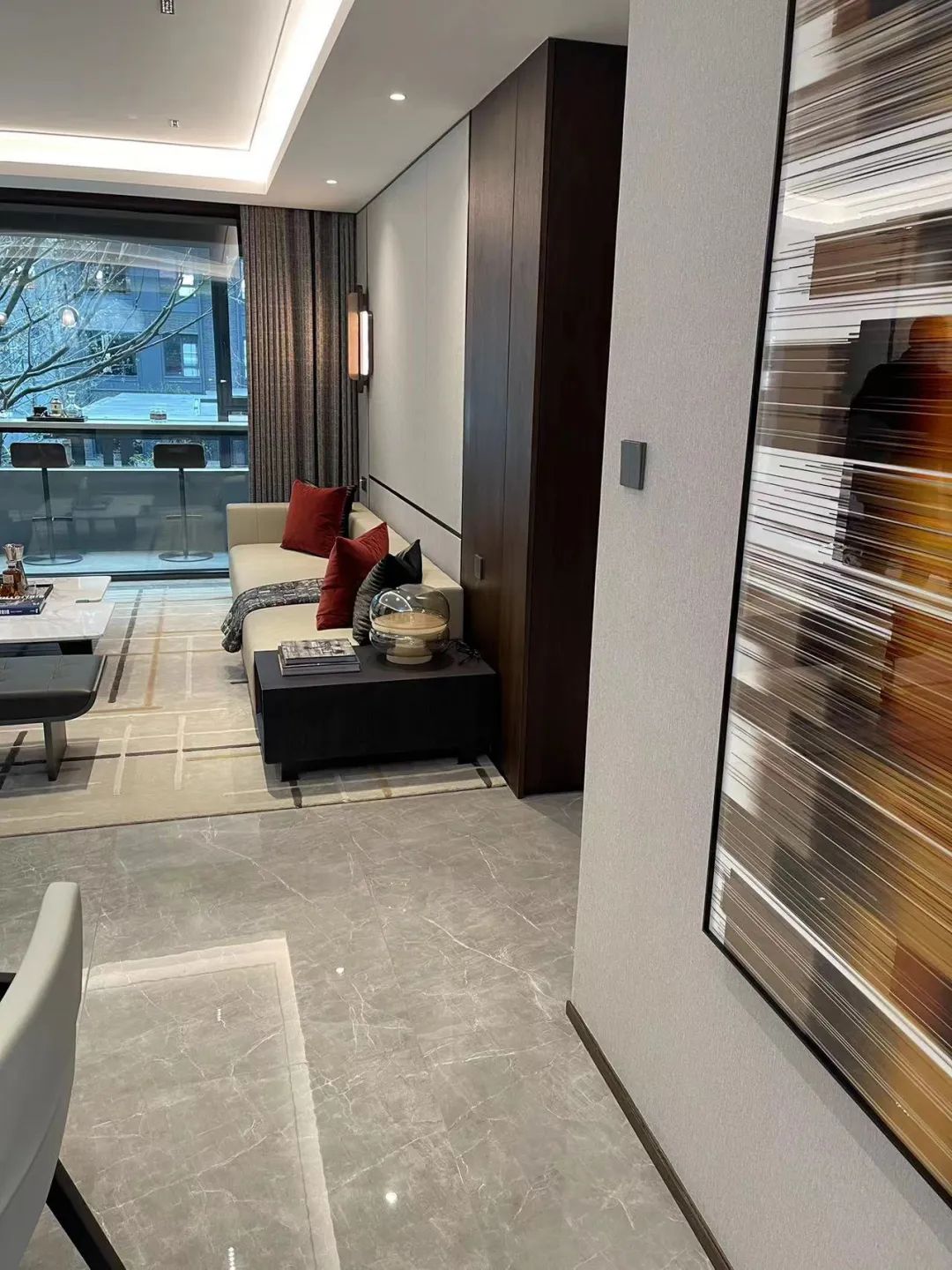 金基皓樾外立面为古朴陶板+硅酸钙板一体板,局部金属线条,隐隐一股现代与优雅,这与鼓楼滨江的相得益彰。