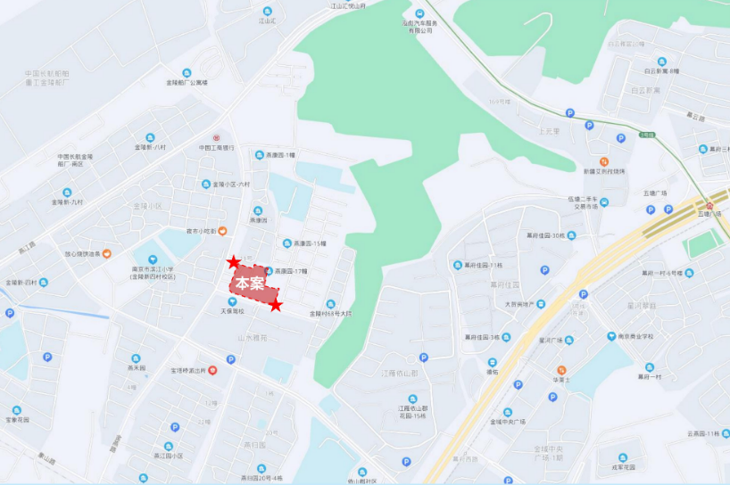 项目位于金燕路以东、燕康园小区以南、金陵村以西、江雁山水雅苑以北。
