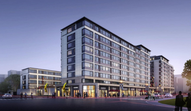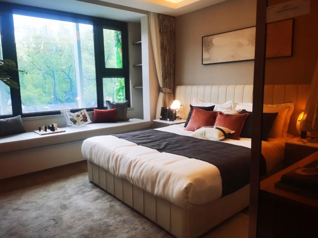 从效果图来看,9-11层低密住宅采用了大面积玻璃,整体简约又不失大气,酒店式公寓临街道也是大面积玻璃,采光和通风效果不错。