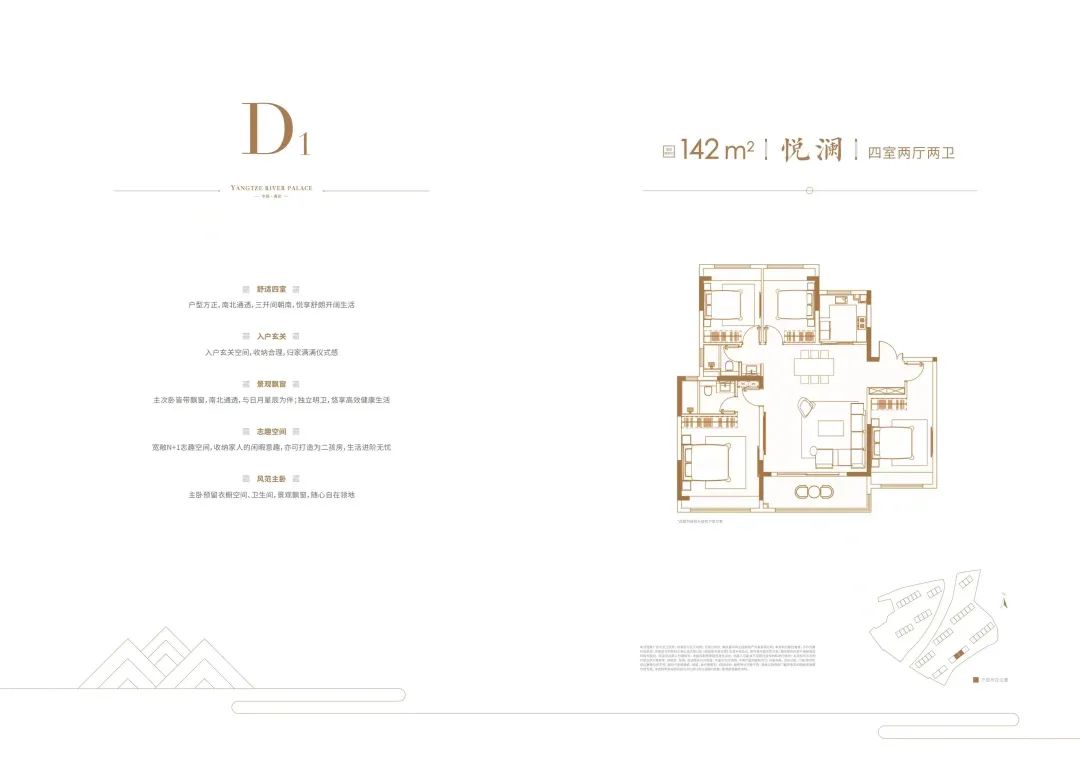 建面约142㎡四房两厅两卫:3开间朝南,南北各两个卧室,满足进阶改善群人的需求。