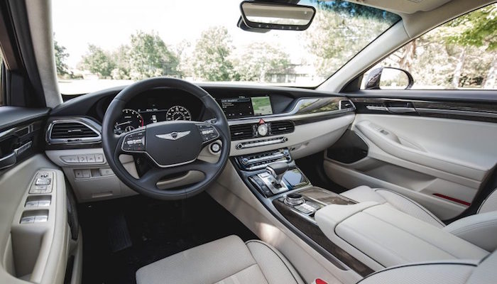 由于额外的全驱牵引,6缸发动机得以在5.3秒内将G90 V-8带到60英里/时。燃油经济性被放在更重要的位置上进行了考量,V-6车型的数据为18英里每加仑油,V-8车型则为17英里每加仑油。在G90的前身现代雅科仕(Equus)上,我们测到的数据为21英里每加仑油。
