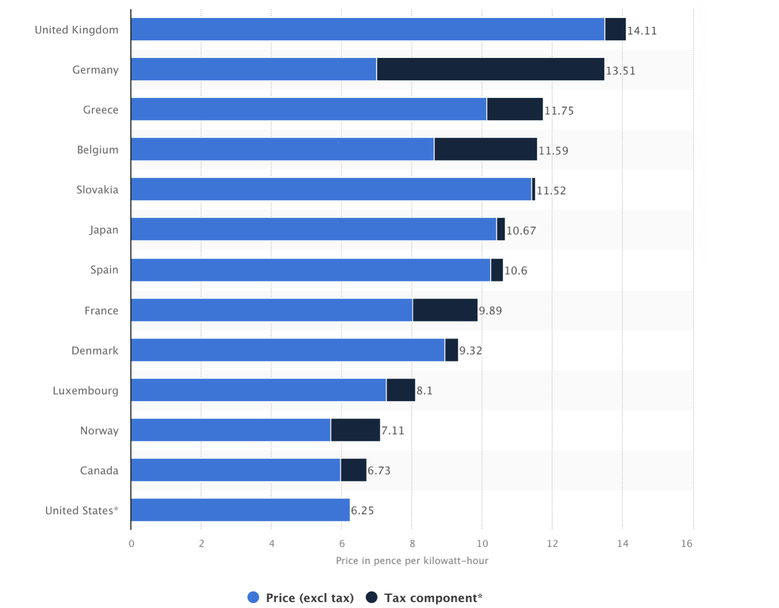 德国电力市场上目前工业电价约为14欧分/度。总理朔尔茨此前在竞选时曾承诺将推动对标法国的4欧分/度的优惠工业电价,但目前为止并未对该国财政部的提案表示支持。