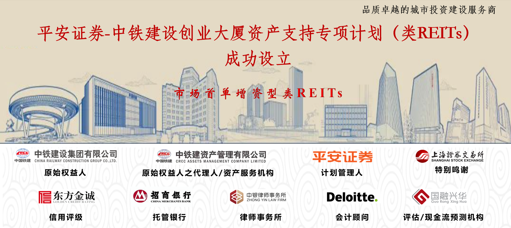 近期,以中铁建设集团有限公司为原始权益人的“平安证券-中铁建设创业大厦资产支持专项计划(类REITs)”在上海证券交易所成功设立,本项目是中国铁建积极响应国务院办公厅《关于进一步盘活存量资产扩大有效投资的意见》号召的首单类REITs产品,也是市场首单采用增资模式取得股权的类REITs产品。