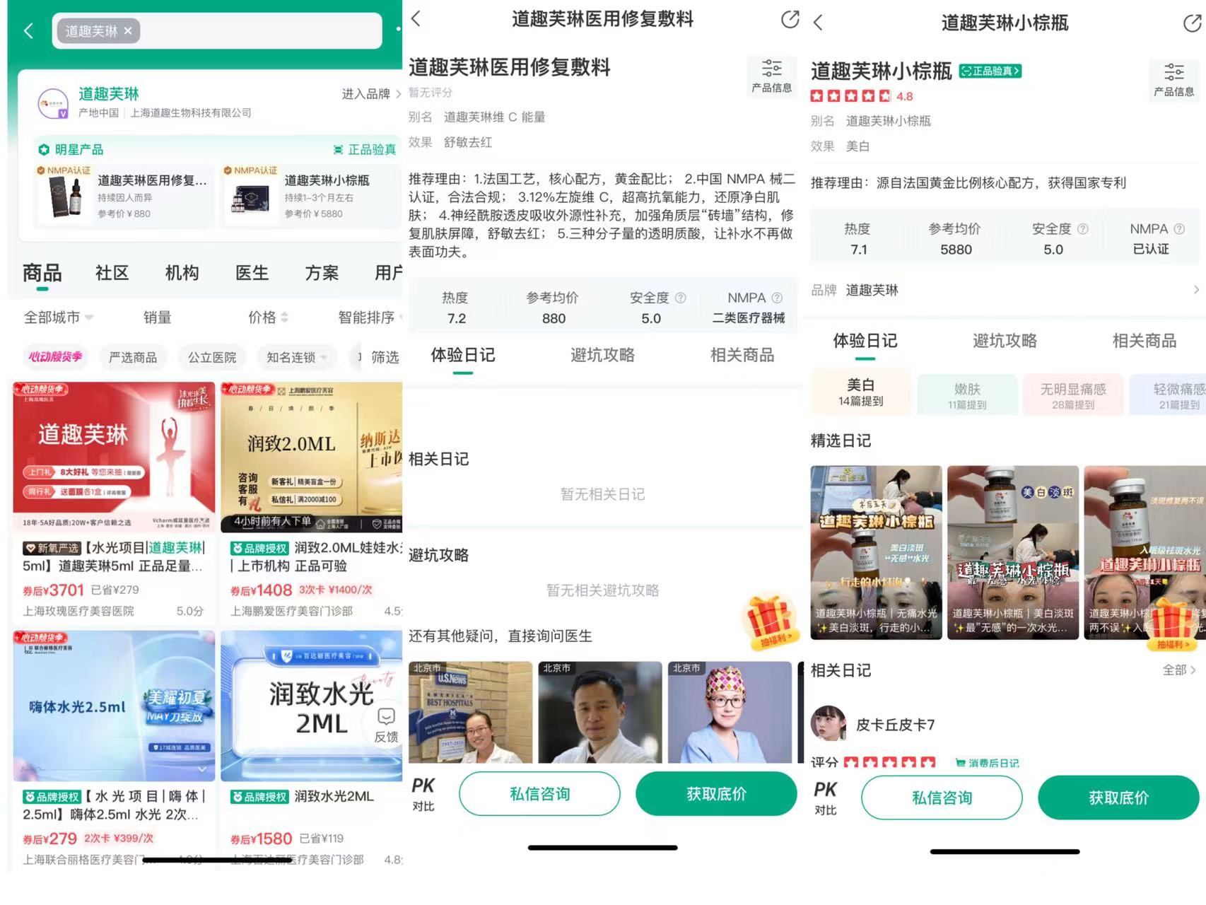 与“英诺小棕瓶”是以化妆品身份进入中国市场进行销售,但在医美机构使用过程中存在不合规使用的情况相比,“道趣芙琳小棕瓶”的使用甚至更加灰色。