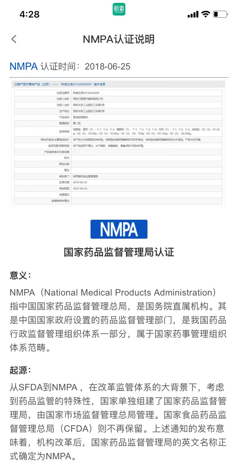 然而,若是点击它们的“NMPA认证”一栏,画面显示的都是“陕械注准20182640059”,注册人系“西安汇智医疗集团有限公司”的那一款产品。