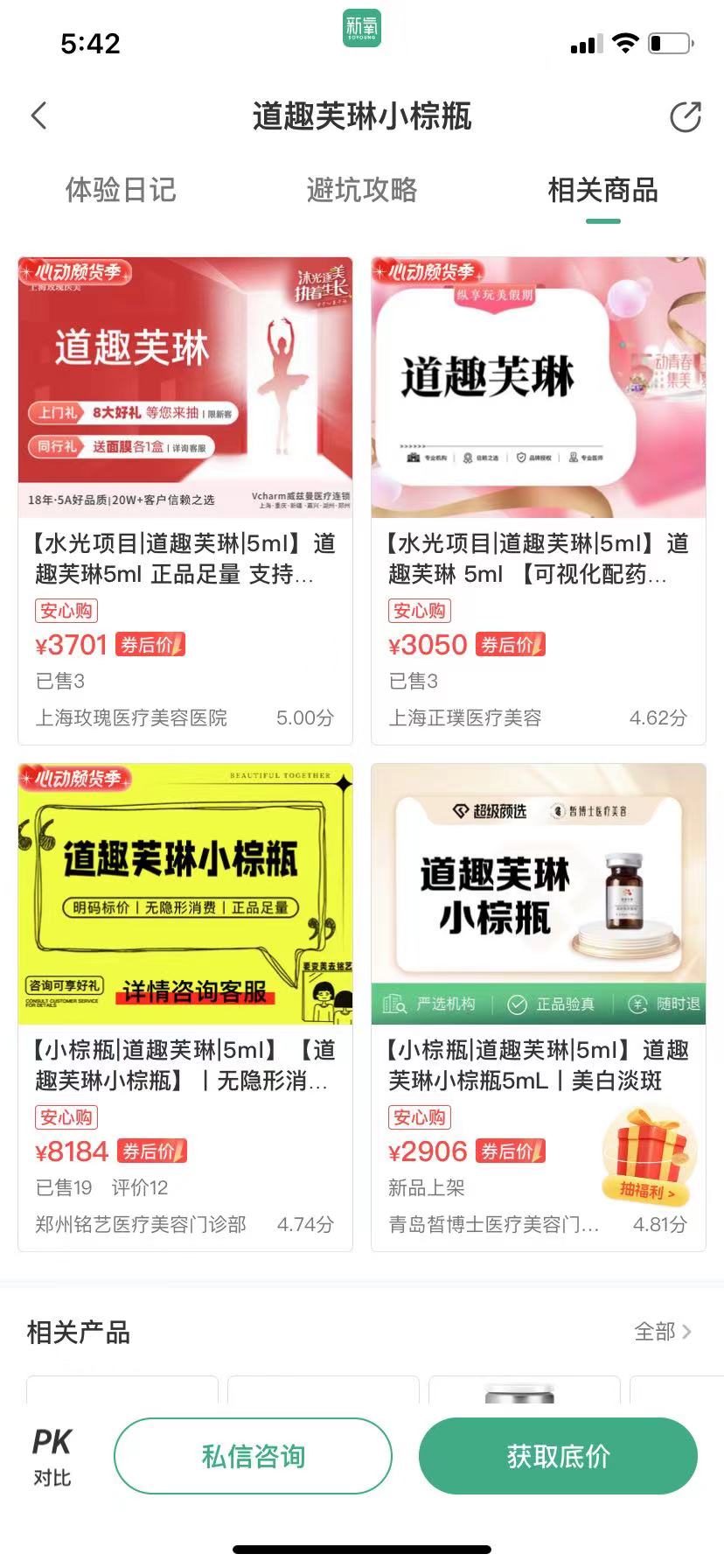 需要指出的是,从新氧平台上的信息可以证实,这款来自西安汇智医疗集团有限公司的普通医用敷料也就是所谓的“道趣芙琳小棕瓶”。