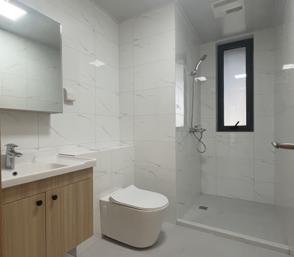 再比如,项目排水采用同层排水,有效隔绝气体串味,地漏处保持坡度,确保正常排水。坐便器均采用后排式坐便器,相比异层排水而言该设计可减少因渗漏水问题造成的邻居间矛盾,让住户更具有安全感。
