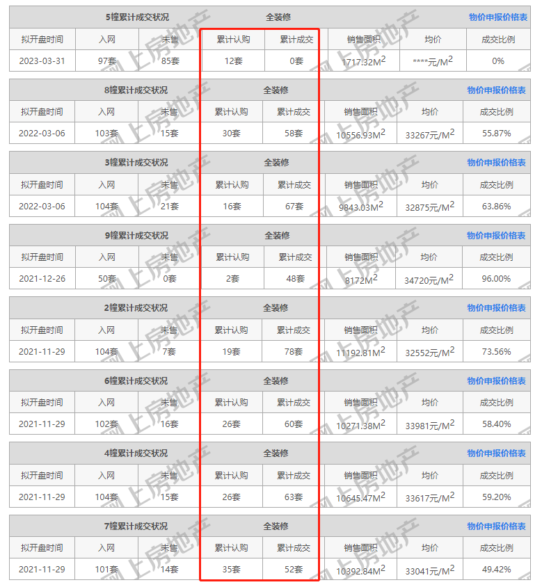 其中天悦锦麟从2021年首开到现在共入网1436套房源,目前仅有188套房源还未售出,均价3.3万/㎡,去化较好,真是没有对比就没有伤害。