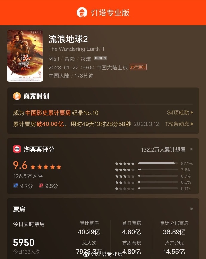 电影《流浪地球2》最终票房40.29亿