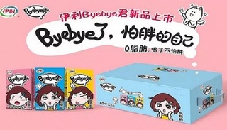 伊利近日推出一款针对年轻消费者的脱脂牛奶Byebye君,采用天猫预售的方式首发。据称是基于“互联网年轻人群对享用乳制品和保持好身材有同样需求”,致力于帮消费者与“怕胖的自己”say bye bye。
