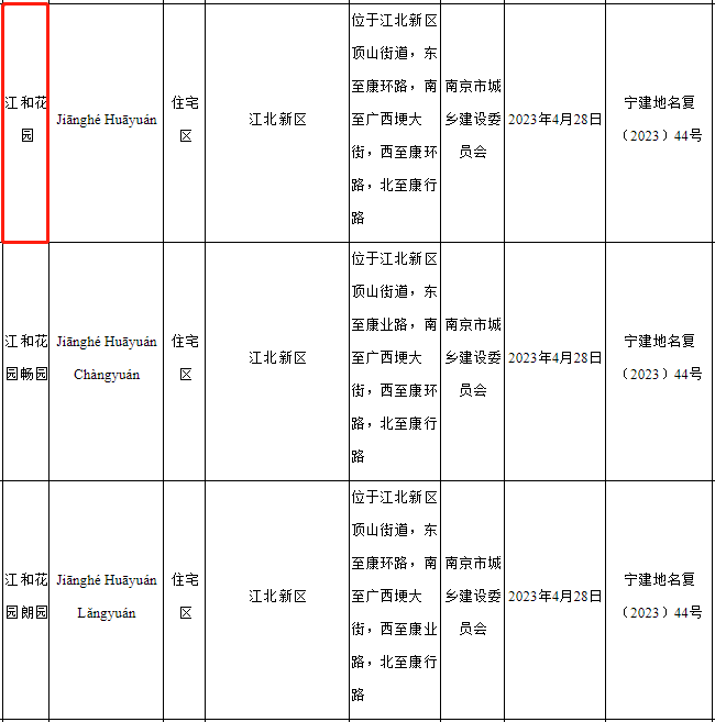 江核颐居G08地块备案名公布为江和花园。