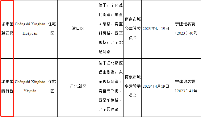 其中浦口2022G59地块,备案名为城市星瀚花苑;江核2022G10地块,备案名为城市星皓雅园。