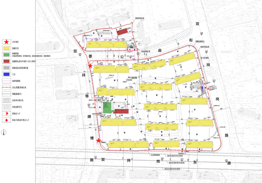 该项目位于玄武区孝陵卫街道双拜巷牌楼路以东、双拜岗东路以北。规划用地性质为R2二类居住用地(100%),总用地面积47311.81平方米,其中: A分区用地面积 40861.89平方米,B分区用地面积4618.19平方米;C分区仅出让地下空间,用地面积1831.73平方米。