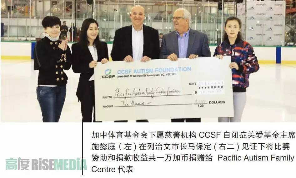 出面玉成此次体育盛事的机构,是加中体育基金会(Canada China Sports Foundation)和温哥华格里菲斯冰球俱乐部公司(Griffiths Hockey Club Inc.)。郭亚泽加盟主要由华裔移民创立的格里非斯冰球俱乐部,带去丰富的冰球产业管理与经营经验,使得该俱乐部从一成立就站在巨人肩膀上,起点之高令人瞩目。而去年成立的加中体育基金会是非盈利公益社团,由一批有志于体育交流的有识之士志愿组成,不计名利与毁誉。这些人不但热爱体育,而且热衷于慈善事业,以体育慈善为其宗旨,屡屡将活动所得捐献给本地医院和自闭症儿童关爱组织,院方致力于残疾运动员的康复研究。去年9月期间,该基金会还组织了加中体育交流周,中国国家体育总局派员参加,并请羽毛球世界冠军叶钊颖走进社区。在“北京遇上温哥华”城市论坛上,作为2010年冬奥会主办方的温哥华传经送宝,未来的冬奥主办方北京也展露商机。今次在加中女冰对抗赛闭幕式上,更将此次比赛门票和捐赠收益,统一捐献给加拿大最大的自闭症家庭援助中心,用于帮助有自闭症儿童的家庭。