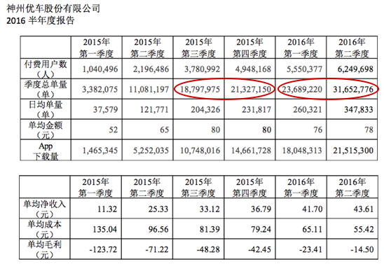 另外,神州财报里还有一个值得玩味的地方,就是单均油费在2016年上半年“不合理”骤降。根据其披露的上市申请材料和2016年上半年财务报表,2015年上半年总油费成本为214301962元,总订单为14463272单,算下来平均每单油费 14.82元;2015年下半年总油费成本为581305364元,总订单为40125125单,算下来平均每单油费 14.49元。但到了今年上半年总油费为603214963元,总订单为55341996单,平均每单油费突然下降到了10.90元,为何突然骤降,原因不得而知。