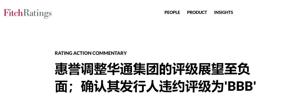 日前,国际评级机构惠誉惠誉将青岛华通国有资本投资运营集团有限公司(以下简称“华通集团”)评级展望由稳定调整至负面,同时确认其长期外币和本币发行人违约评级为'BBB'。