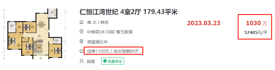 根据二手网站显示,目前该小区二手房挂牌价为55678元/㎡,有40套房源在售,近期成交1套房源,建面179.43㎡,成交总价1030万,成交单价57405元/㎡。