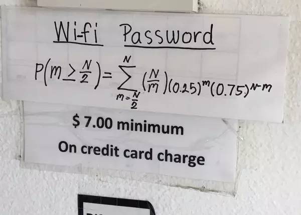 美国的一家名为YaYa's的泰国餐厅,因为网络使用拥堵,想了一个方法让大家可以使用到优质的网络。餐厅老板在墙上贴了一道数学题,如下图: