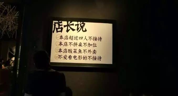 规矩那么多,是否会得罪顾客?恰恰相反,这样的有个性反而受到顾客的追捧,即使是在楼上店都需要排队。很多顾客去吃过都会拍一下他们的四不接待,发朋友圈。而因为他们的酸菜鱼做得确实不错,名气和口碑也就有了。