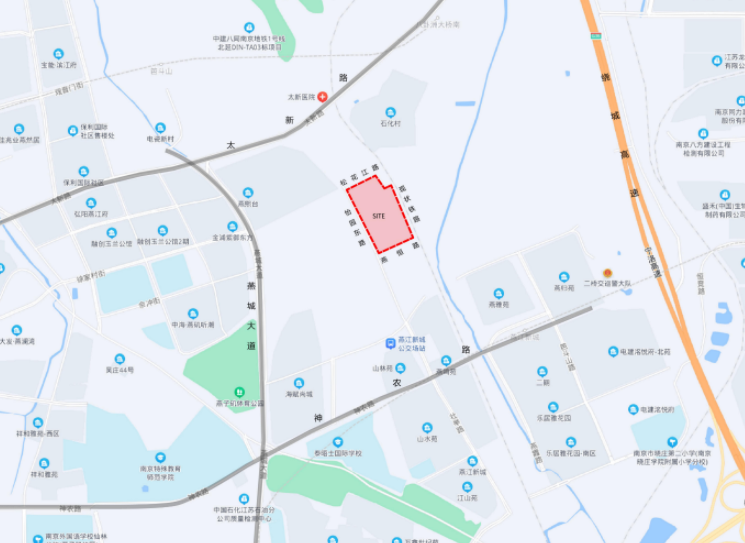 项目位于燕子矶新城,东至现状铁路及防护绿地、南至燕恒路、西至怡园东路、北至松花江路。