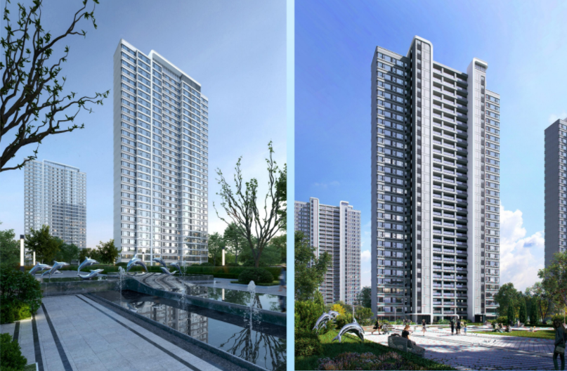 从效果图来看,项目采用现代建筑风格,前后楼栋之间间距超过40米,预留了较为充足的采光和通风空间。
