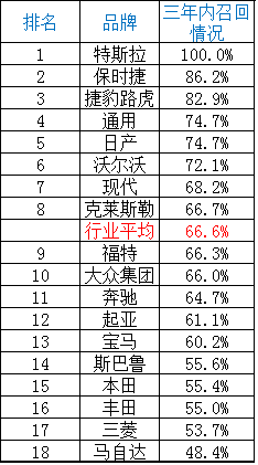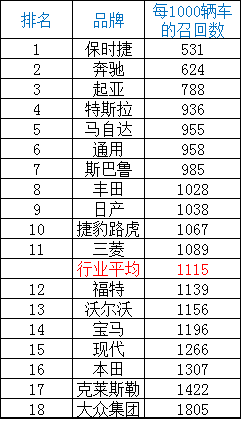 18家车企当中,保时捷以531辆的成绩位居榜首,而大众则以1805辆的成绩垫底。排气门事件由于涉及范围太大,仍未确认具体的召回车辆数,所以本次调查没有加进去,不然大众的召回率还要再上一个台阶。